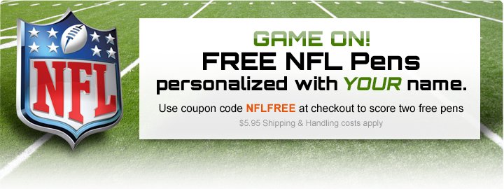 Pens.com is offering a discount deal for two FREE Customized NFL Pens!